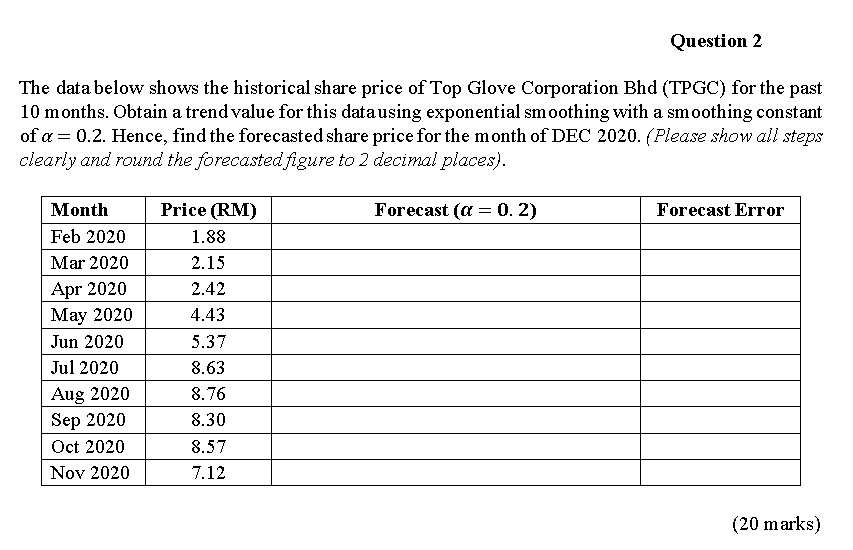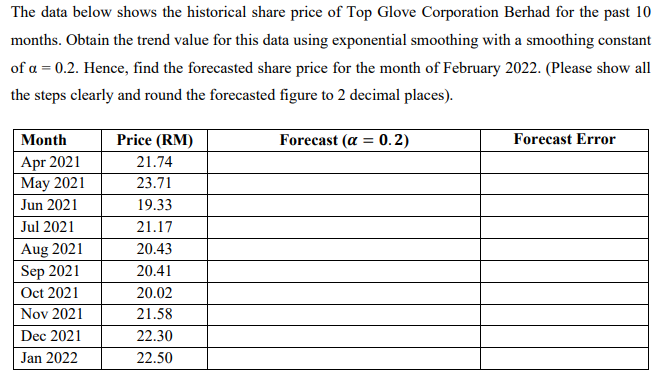 Question 2 The Data Below Shows The Historical Share Chegg Com